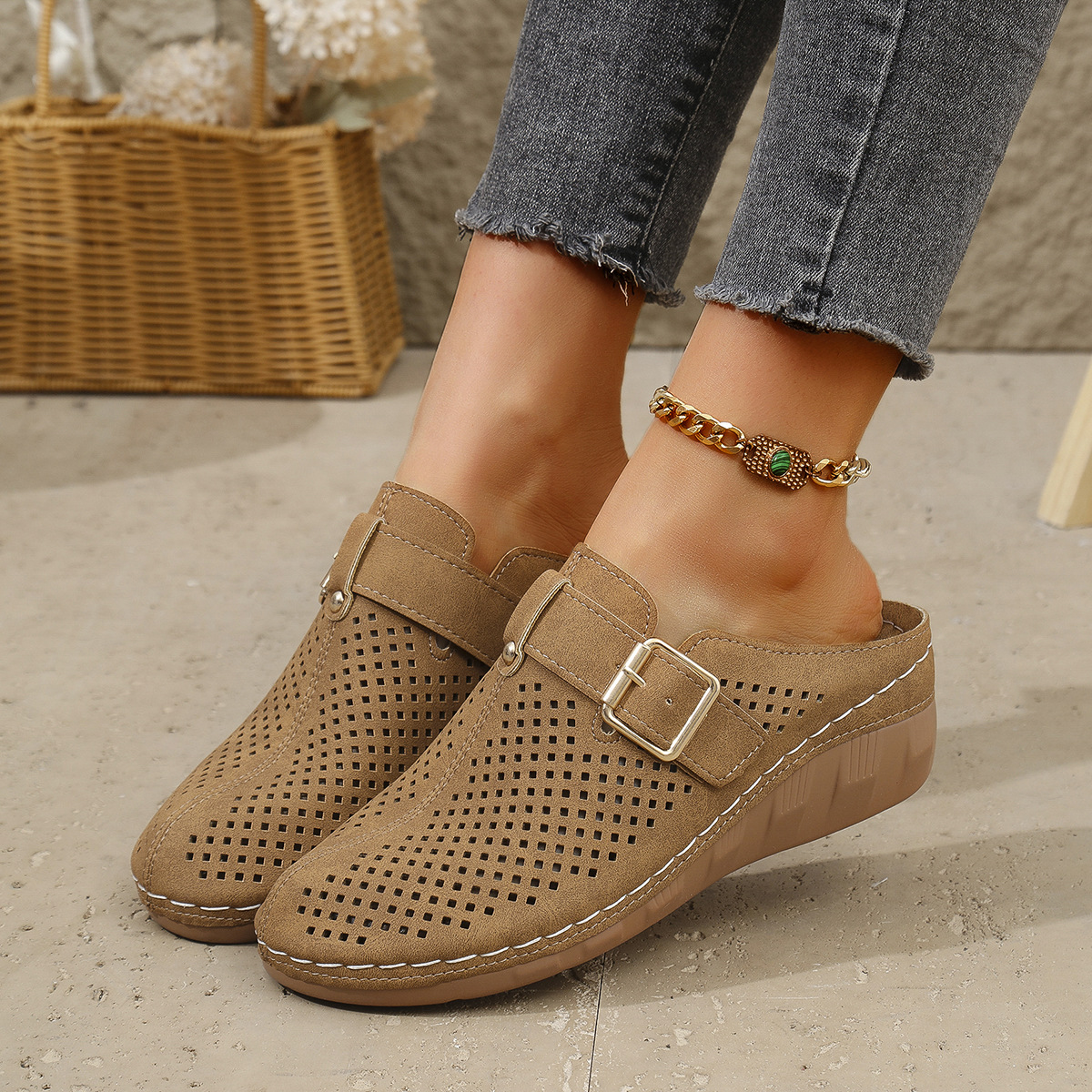 Simply, slip them on and snug your feet in place around the toe clasp for enhanced support.